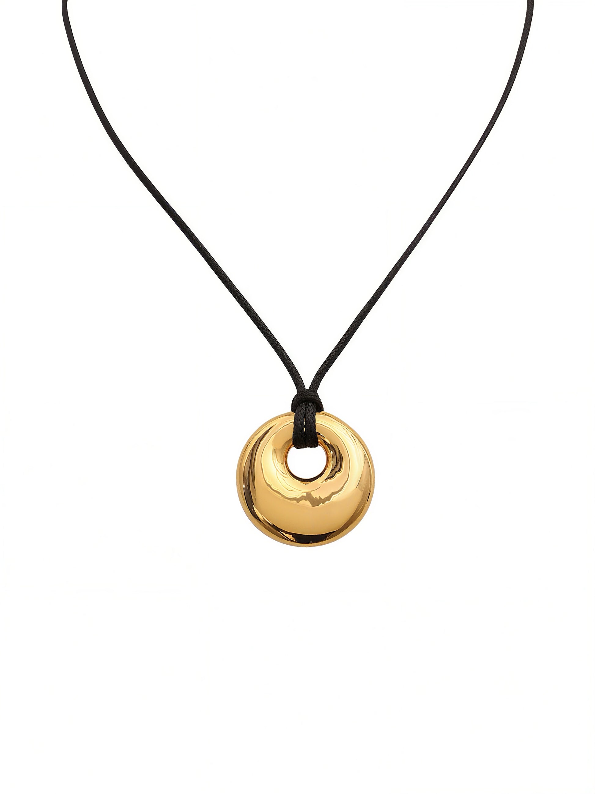 Circle Pendant Rope Necklace|Gold